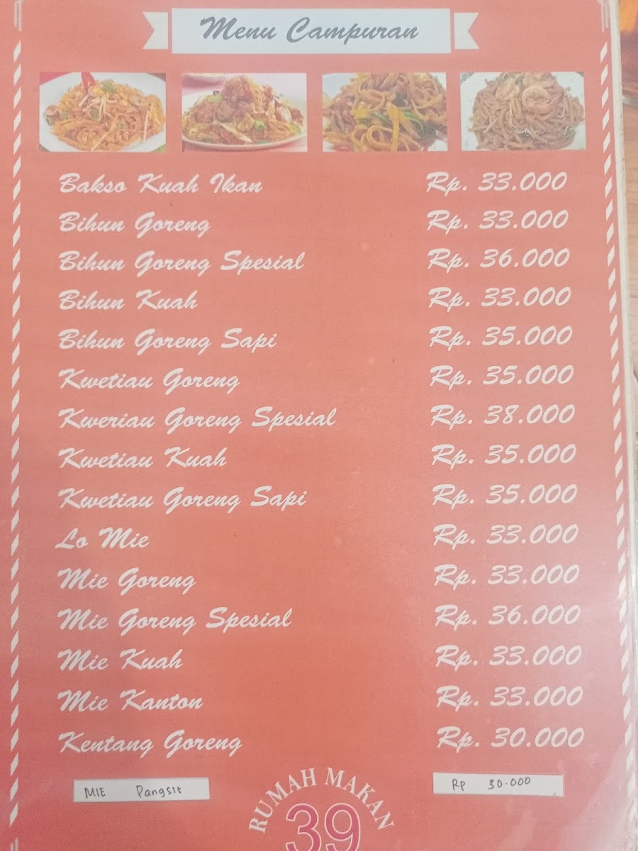 For noodle enthusiasts, the mie canton steals the spotlight, delivering a satisfying experience that keeps patrons returning. With a diverse selection, including kwetiauw and chapcay, there is something for everyone. Whether you're looking for a quick takeaway or a sit-down meal, Rumah Makan 39 has you covered. Spicy food lovers will find their paradise here, thanks to the restaurant's emphasis on bold flavors. Come taste the best Chinese food in town and discover your new favorite dish!